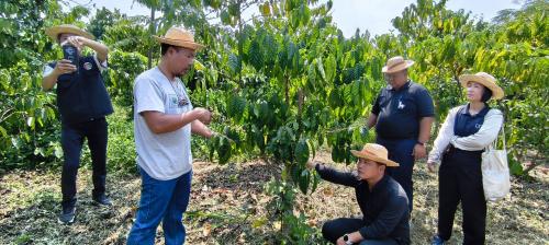 🩵 นายประจักษ์ ธรรมโชติ ประธานกลุ่มวิสาหกิจชุมชนบ้านไร่ธรรมโชติ ได้นำเสนอข้อมูลการเพาะปลูกกาแฟออร์แกนิค และการนำเมล็ดกาแฟมาแปรรูปสินค้าเป็นเมล็ดกาแฟคั่วบดฮันนี่โปรเซส ที่มีความเป็นอัตลักษณ์หนึ่งเดียวของจังหวัดประจวบคีรีขันธ์ โดยทางกลุ่มได้รับการรับรองมาตรฐาน จากการส่งเมล็ดกาแฟเข้าร่วมตรวจสอบเมล็ดกาแฟ จากสมาคมกาแฟแห่งประเทศไทย เป็นเครื่องการันตีคุณภาพเมล็ดกาแฟจากไร่ธรรมโชติ มีค่าเปอร์เซ็นต์ความเข้มข้นของเมล็ดกาแฟอยู่ที่ 83% ซึ่งถือว่าเป็นคุณภาพเมล็ดที่สูงมากในกลุ่มกาแฟโรบัสต้า ปัจจุบันทางกลุ่มเปิดรับคณะศึกษาดูงาน เกี่ยวกับขั้นตอนและกระบวนการผลิตกาแฟออร์แกนิค นอกจากนี้ทางกลุ่มยังเน้นการแปรรูปเมล็ดกาแฟและเครื่องดื่ม เพื่อร่วมออกบูธในงานแสดงและจำหน่ายสินค้าต่างๆ ด้านการตลาดมีออกร้านประจำอยู่ที่ห้างสรรพสินค้าแม็คโครและบลูพอร์ต หัวหิน นอกจากนี้ยังเปิดเป็นสถานที่ท่องเที่ยวเชิงเกษตร มีที่พักให้บริการนักท่องเที่ยวกลุ่มเล็กๆ ประมาณ 10-20 คน โปรแกรมกิจกรรมการท่องเที่ยว ได้แก่ การเก็บดอกกาแฟ เก็บเมล็ดกาแฟ คั่วบดเมล็ดกาแฟ และการดริปกาแฟ