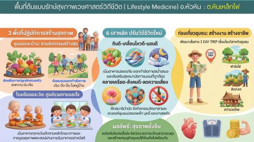 📢 แผนปฏิบัติการขับเคลื่อนพื้นที่ต้นแบบรักษ์สุขภาพเวชศาสตร์วิถีชีวิต อำเภอหัวหิน ประกอบด้วย